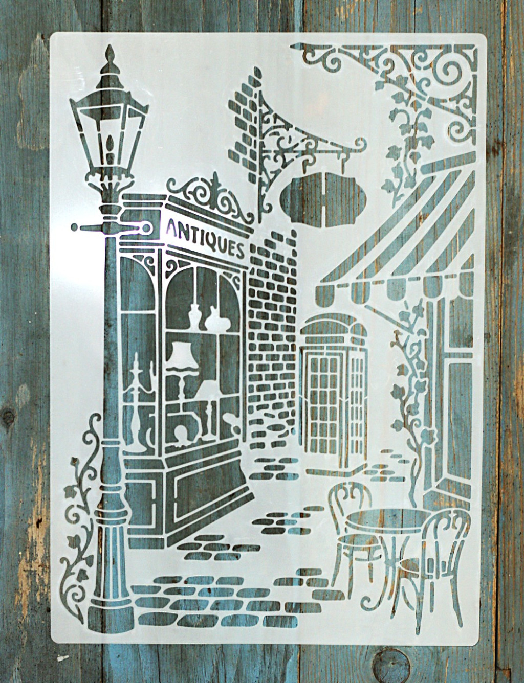 antik utca festő rétegző sablon 21x30 cm-es műanyag stencil