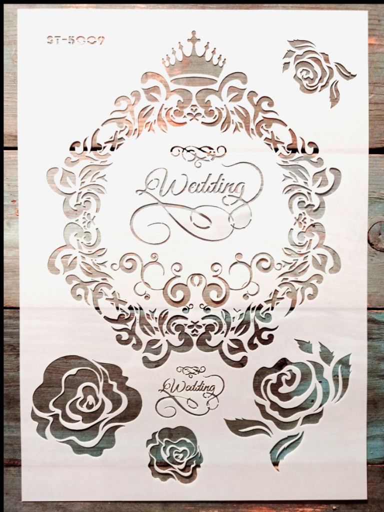 Wedding, esküvő feliratos vintage festő sablon 21x30 cm-es műanyag stencil