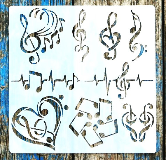 hangjegy mintás, zene DIY 20x20 cm-es sablon violinkulcs műanyag stencil