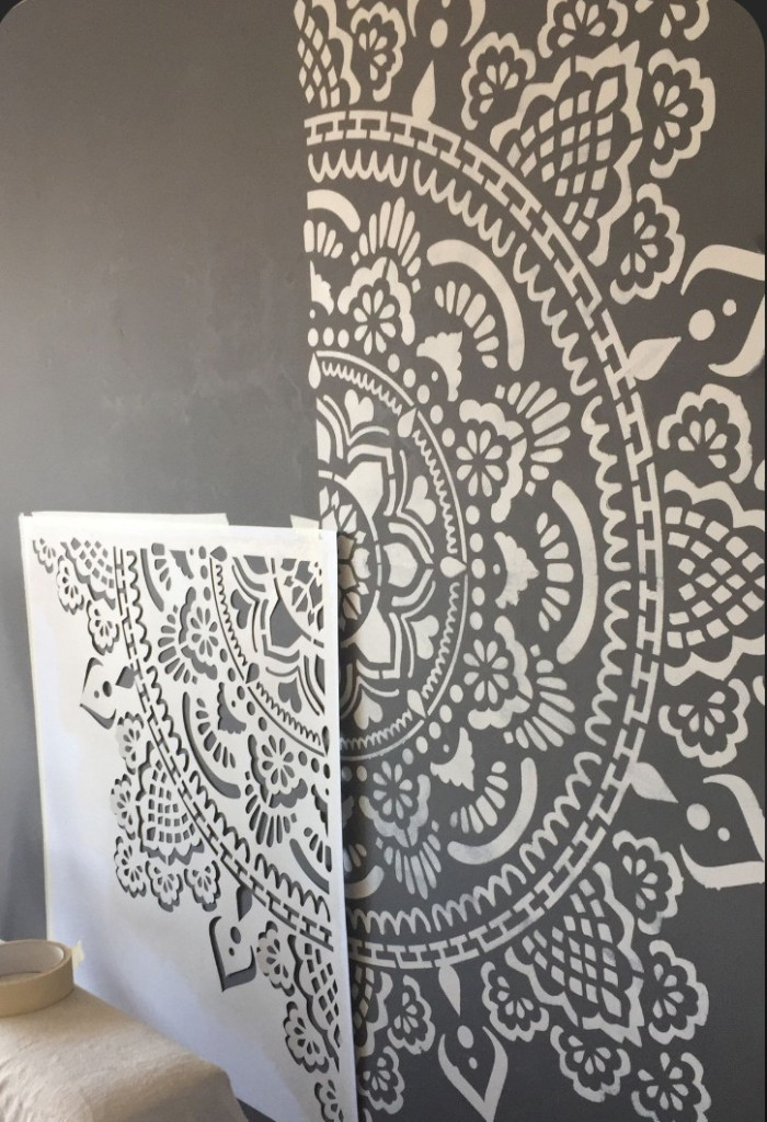 sarok Mandala mintás rétegző sablon 30x30 cm-es műanyag festő stencil