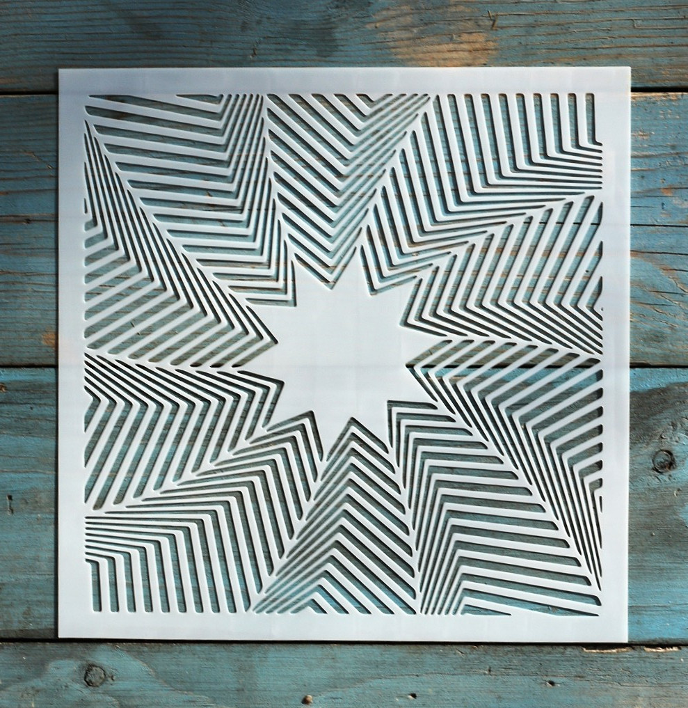 geometriai mintás műanyag sablon 20x20 cm-es DIY festő stencil
